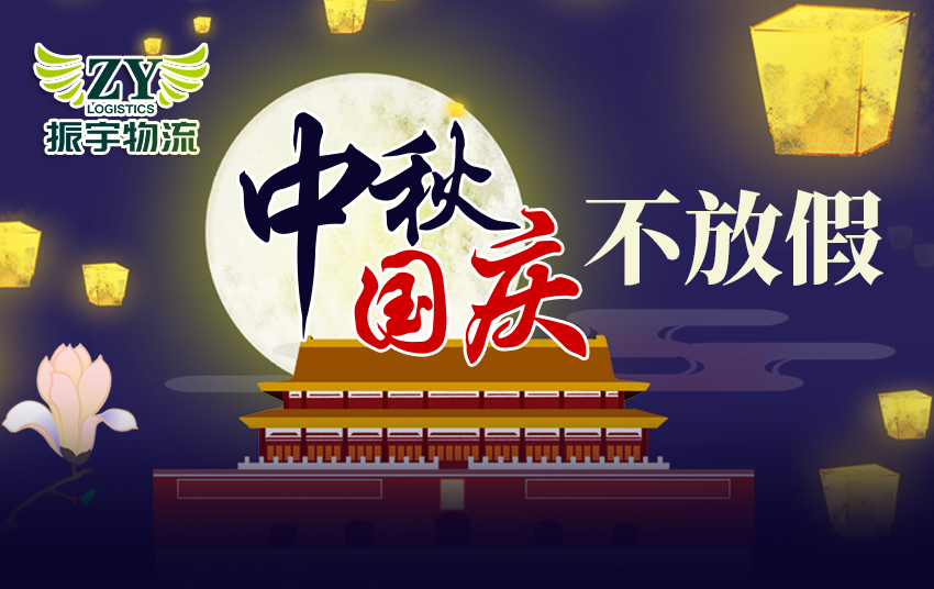金秋時節,丹桂飄香,我們即将迎來中華人民共和國71周年華誕。疫情将過,爲瞭使廣大客戶的生意保持快速發展的良好勢頭,結合我公司實際情況,振宇物流10月1日—10月8日節假日期間不放假,各網點正常收發貨,所有工作正常運行!雙節期間中轉貨物及部分線路可能會延遲。