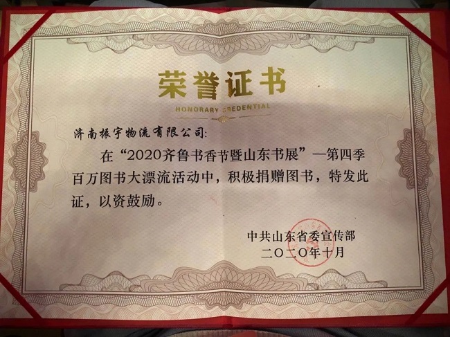 振宇物流此次積極主動參(cān)與“2020年齊魯書香節暨山東書展-第四季百萬圖書大漂流”活動,隻爲讓每一位鄉村孩子都能讀上一本完好的書,努力承擔(dān)書籍裝卸及運輸,将這些書籍送往東明縣沙窩鎮姜屯小學。