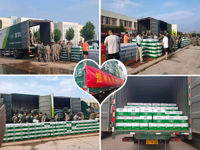 在洪災面前,在緊要關頭,爲社會各界救援物資盡快運抵災區,振宇物流開通瞭(le)綠色通道,免費承運發(fā)往河南的防汛救災捐贈物資,目前,已向河南運往礦泉水等緊缺物資。