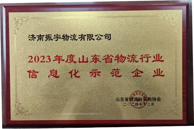 同時,振宇物流集團憑借在信息化方面的卓越表現和創新實踐,榮獲瞭(le)“2023年度山東省物流行業信息化示範企業”的榮譽稱(chēng)号!這一殊榮不僅是對公司技術創新和實力提升的認可,也爲我們未來企業的發展注入瞭(le)強大的動力!