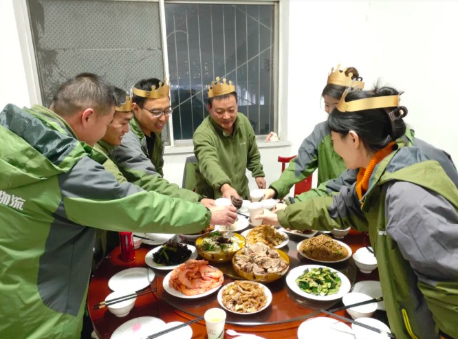 夜幕降臨,溫馨的氛圍延續到餐桌之上。熱氣騰騰的佳肴陸續上桌,大家圍坐一堂,暢談工作與生活,分享著(zhe)彼此的趣事與感悟。推杯換盞間,清脆的碰杯聲交織著(zhe)歡聲笑語,既是對過往並(bìng)肩作戰的感謝,也是對未來攜手同行的期許。一張張笑臉、一聲聲祝福,彙聚成振宇物流最溫暖的畫面。