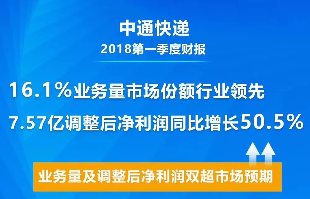 5月10日,中通快遞發布瞭(le)截止到2018年3月31日的第一季度未經審計财報(bào)。财報(bào)顯示,中通快遞第一季度營收爲35.444億元人民币(約合5.651億美元),同比增長(zhǎng)35.6%;一季度淨(jìng)利潤爲5.575億元人民币(約合8890萬美元),同比增長(zhǎng)10.9%。
