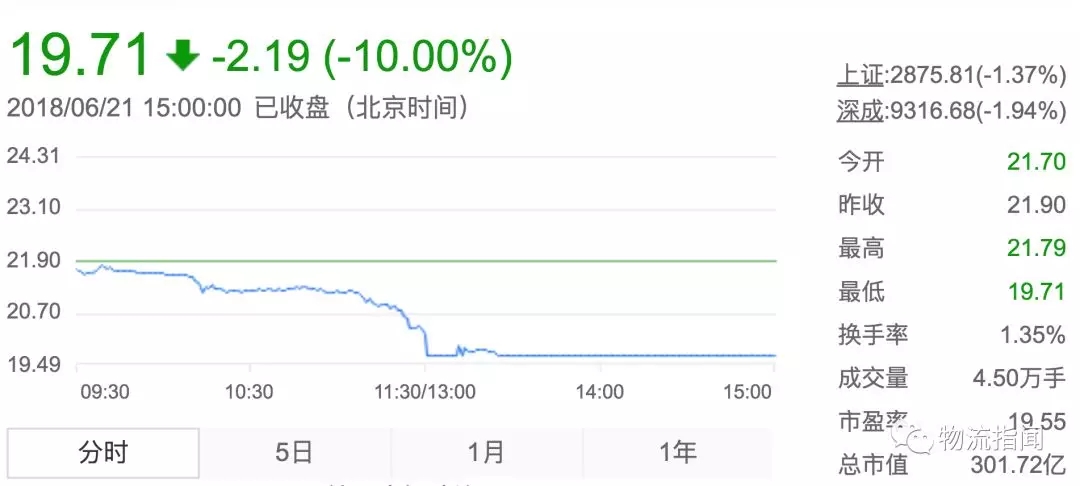 濟南物流:申通快遞午後閃崩封死跌停闆
